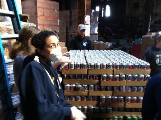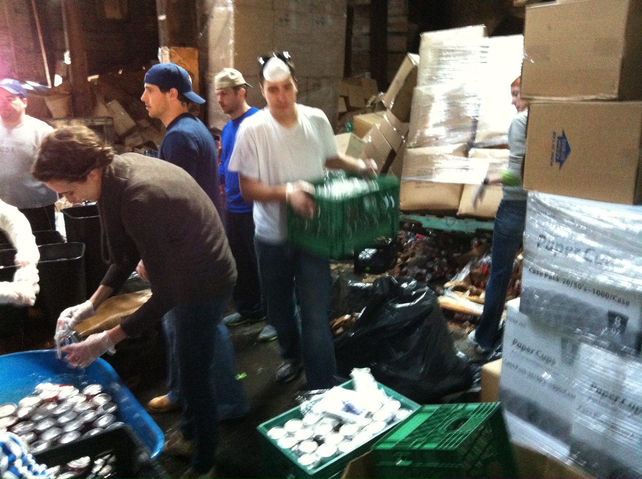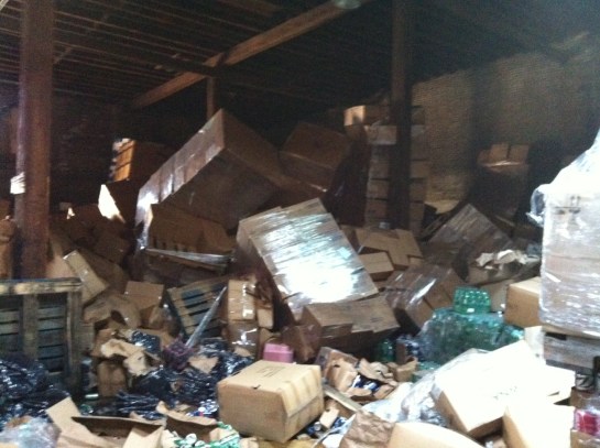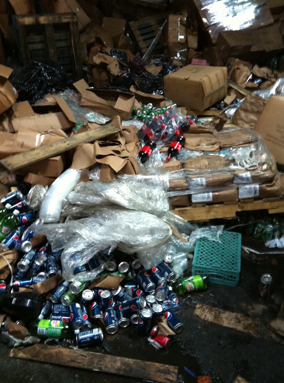 Along with a team of 3 others we were cleaning out a warehouse down near the water. The warehouse had been flooded with up to 6 feet of water during the hurricane. If we had been there for it we would have been drowning, Teresa observed. Inside we encountered an strange landscape of toppled boxes that had melted down into soppy gook. The contents of the boxes, thousands of soda cans, were swimming in the sea-water and dirt muck. Let’s assume there were a lot of bacteria.