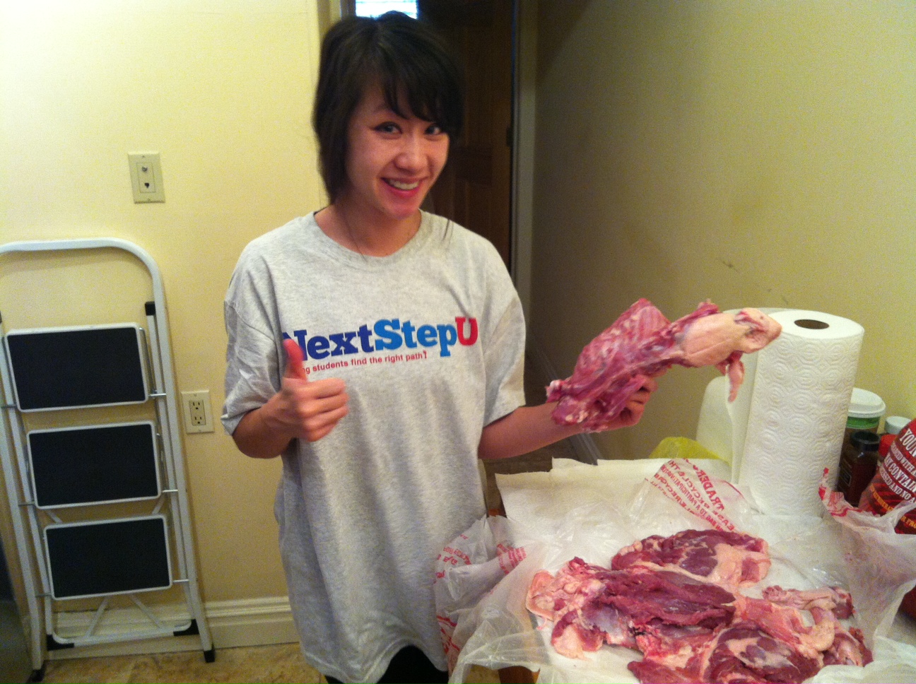 I had a great time putting it all together, but if I ever do it again I will look into buying previously de-boned birds, or I will pay a butcher to de-bone them in 5 minutes and save me and my guests the 1.5 hours of knife work. Nevertheless, I’m happy that we did it ourselves this time because it was bad-ass, and because it seriously works up your appetite. 🙂